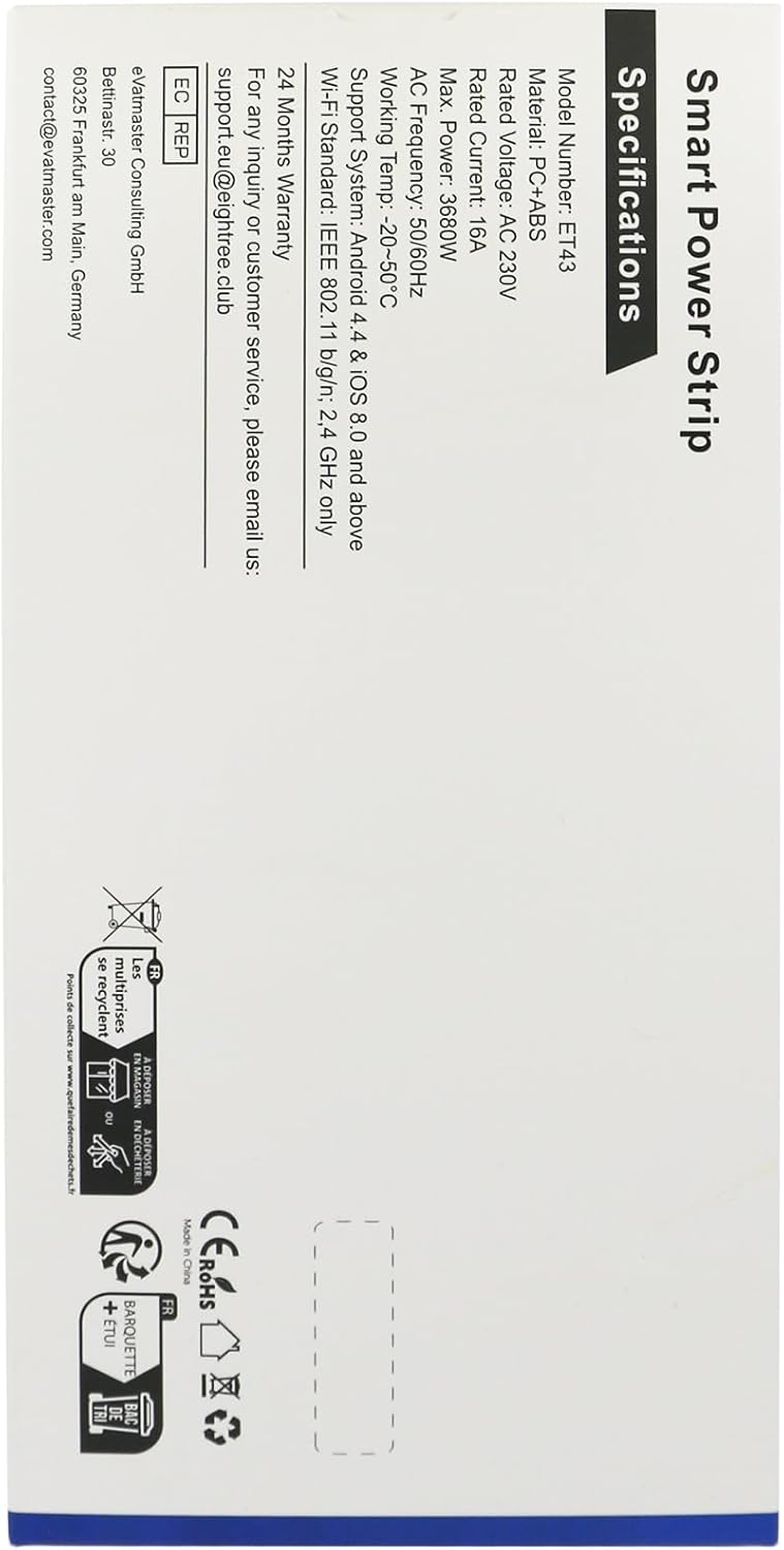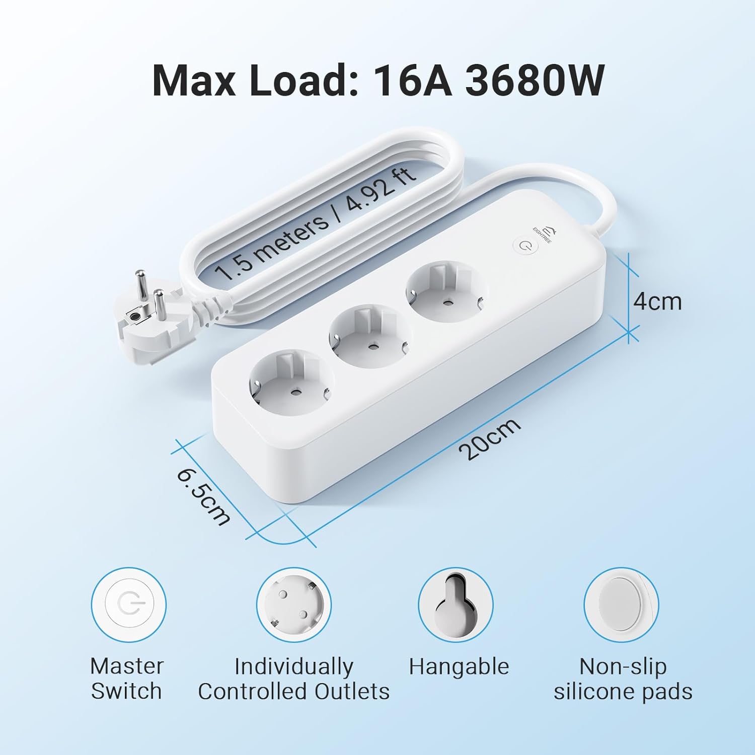 Controllo personalizzato: La multipresa intelligente Eightree ha 3 prese AC, che ti consentono di accendere o spegnere singolarmente ogni dispositivo tramite l’app e di impostare programmi personalizzati per ciascun apparecchio.