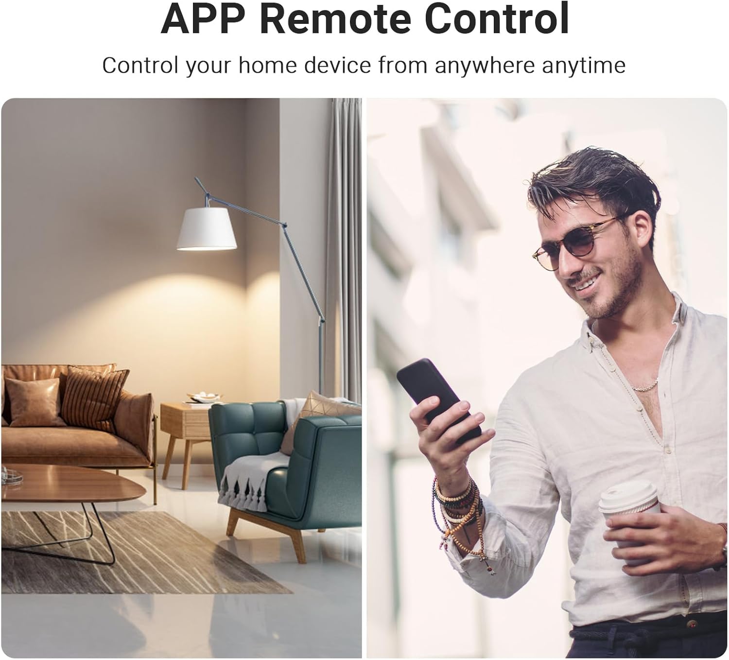 Installazione semplice: Scarica semplicemente l’app Smart Life, collega la multipresa Wi-Fi alla presa e il tuo smartphone la riconoscerà automaticamente tramite Bluetooth. Non è necessario un complicato accoppiamento o una configurazione manuale. (Solo Wi-Fi a 2,4 GHz)