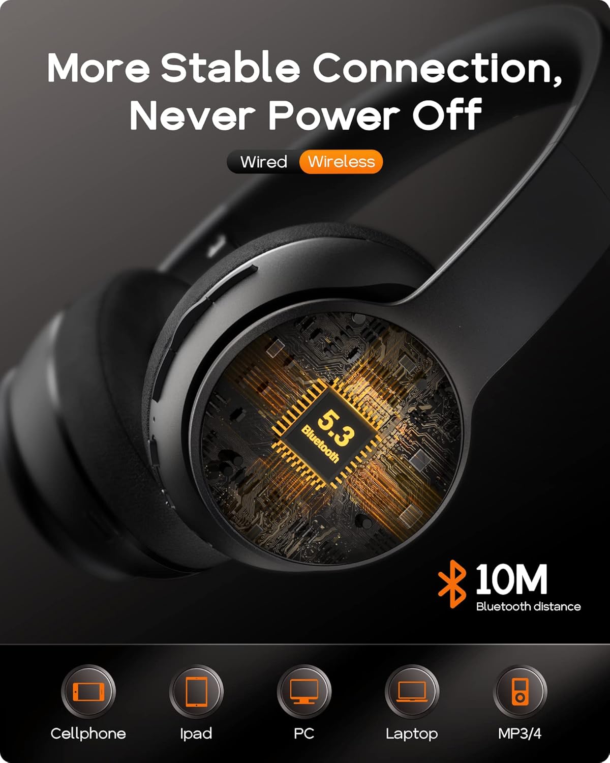 【Cuffie Stereo HiFi】Utilizzando lo stereo HD e un chip Bluetooth 5.3 avanzato, le nostre Cuffie Wireless Bluetooth sono progettate per offrirti una qualità del suono superiore, bassi profondi ad alta fedeltà e alti cristallini, anche al volume più basso Immergiti in una musica coinvolgente! L’obiettivo di fornire ai clienti un’eccellente qualità del suono è il nostro costante perseguimento.