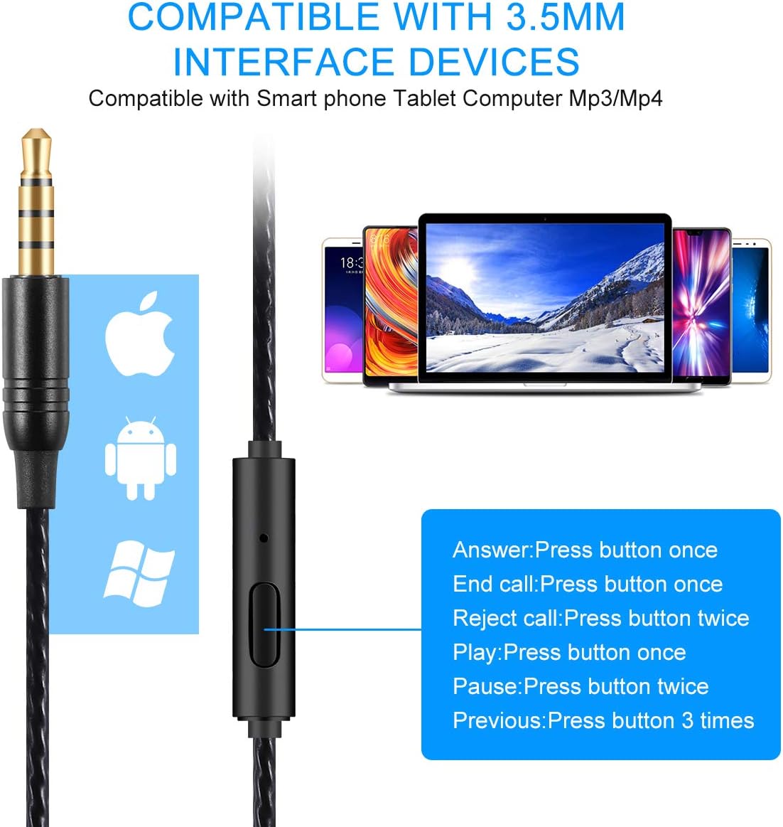 Buona Compatibilità:Compatibile con tutti gli smartphone e dispositivi dotati di ingresso audio da 3,5mm come la gamma completa di Samsung Galaxy e Note Series, console di gioco, Nexus, HTC, laptop, tablet,lettori MP3 /MP4, PC e altro.