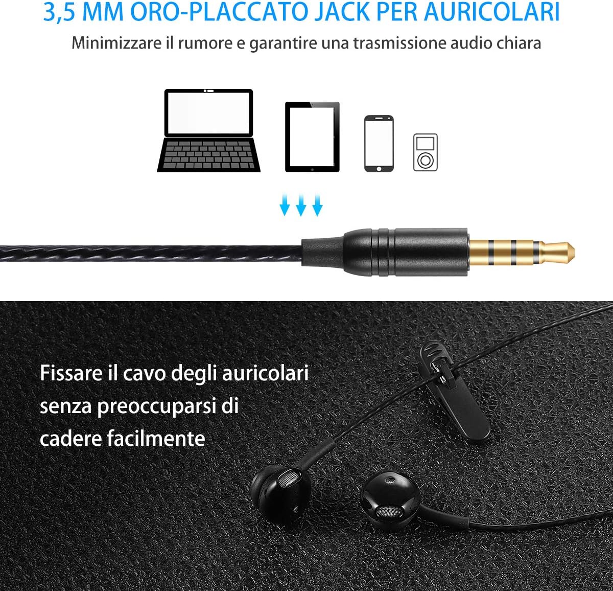 Design Ergonomico: Auricolari sono progettati combinando le statistiche dei dati, ossia in-ear di diametro 6 mm e angolo di elevazione a 60 °, che si adatta perfettamente alla forma dell’ orecchio e non cadere. Built-in Microfono per consentire di rispondere alle chiamate ,ascoltare o mettere in pausa la musica a vostro piacimento,che e utile in modo speciale durante la preparazione dei pasti o quando si va a corere.