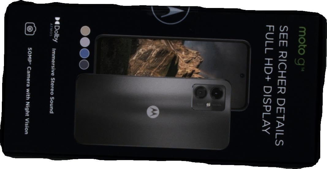 Moto g14. Grazie allo schermo Full HD+ da 6,5″, straordinariamente nitido, la qualità delle immagini di film, serie, giochi e videochiamate è cristallina. In più con la memoria interna da 256GB c’è spazio in abbondanza per foto, film, musica e app! E se non basta, è espandibile fino a 1 TB con una scheda microSD.