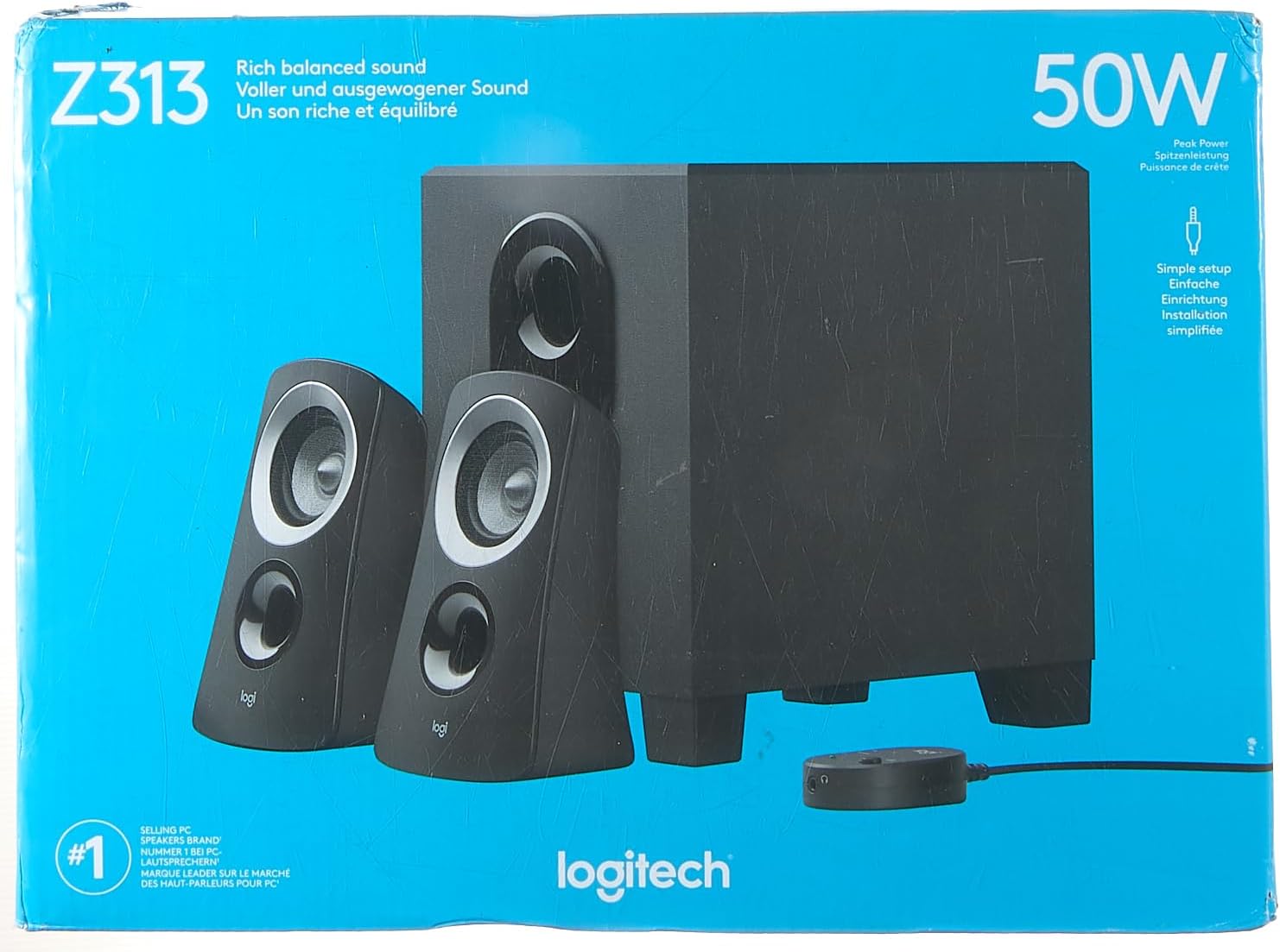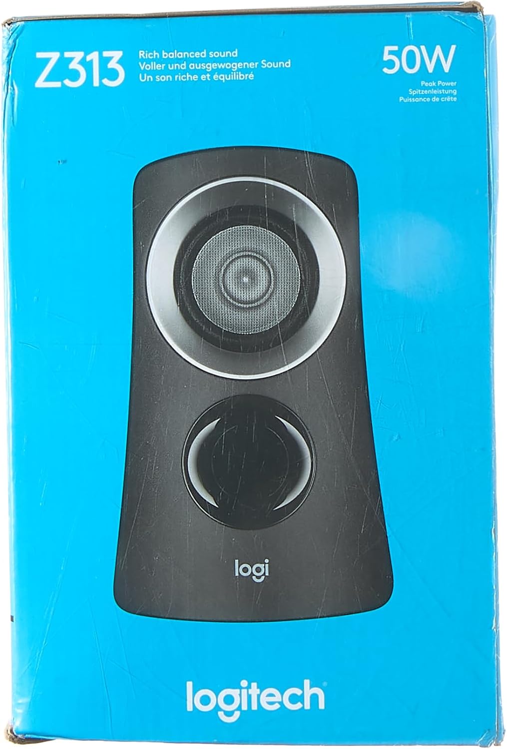 Il sistema di altoparlanti 2.1 per PC Logitech Z313 è dotato di una comoda unità di controllo e di un suono potente e bilanciato con i suoi 25 Watt (RMS). Ora puoi davvero rilassarti e goderti la tua musica. Il volume e l’interruttore di accensione sono pratici e sempre a portata nell’unità di controllo. I subwoofer sono compatti e ad escursione lunga, ottimi per spazi ristretti e per bassi profondi. L’installazione è molto semplice: basta collegare gli altoparlanti al subwoofer e quest’ultimo al computer e il gioco è fatto. Dotati di presa per cuffie e di controllo del volume sempre a portata tramite l’unità di controllo con cavo. Ora puoi dire addio all’audio integrato del PC e goderti suoni avvolgenti e bassi profondi con tutte le funzioni multimediali del PC grazie al soundsystem di Logitech Z313. Requisiti di sistema. Computer con sistema Windows: Windows XP, Windows Vista o Windows 7, schedia audio PC o uscita audio da 3.5 mm. Computer Mac: Mac OS X 10.3.9 o successive. Contenuto della confezione: due altoparlanti, un subwoofer, unità di controllo, manuale utente.