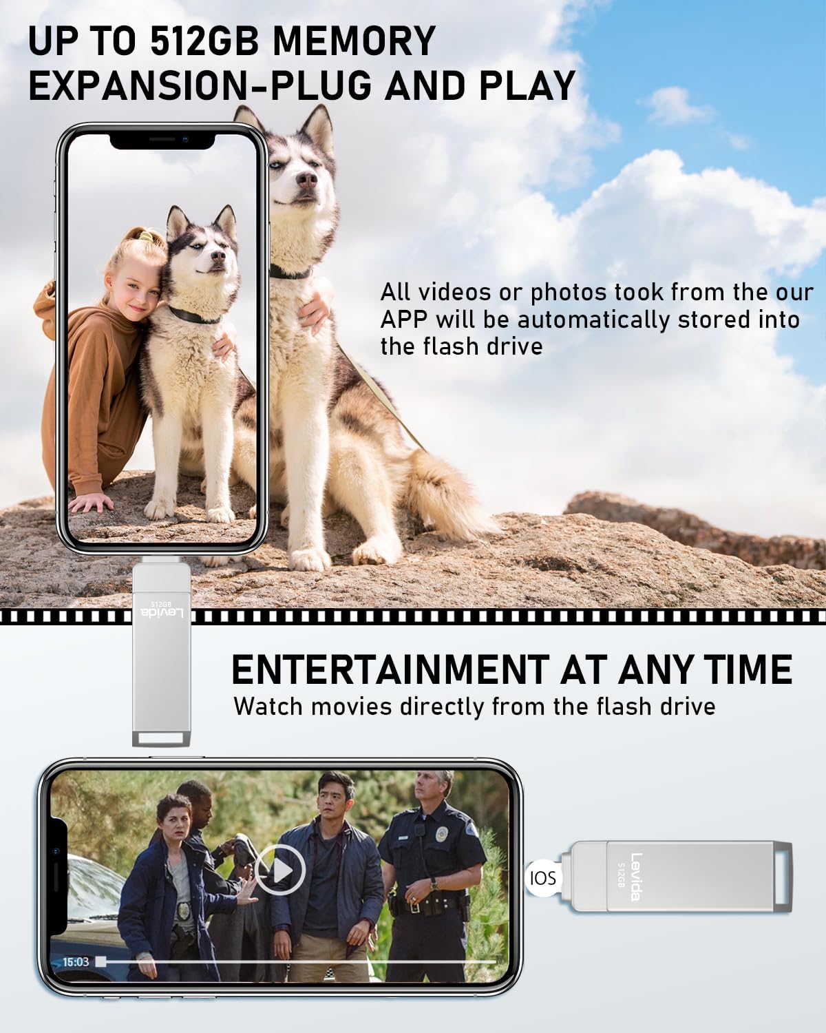 ✅【Compagno perfetto per la vita quotidiana】- La chiavetta USB Levida arricchisce la tua vita. Con questo compagno affidabile, puoi non solo eseguire il backup dei dati, ma anche catturare i momenti più belli e gestire lo spazio di archiviazione in modo piacevole. Inoltre, puoi condividere foto o video direttamente sui social media (Instagram/Facebook/Twitter) tramite la flash drive phone.