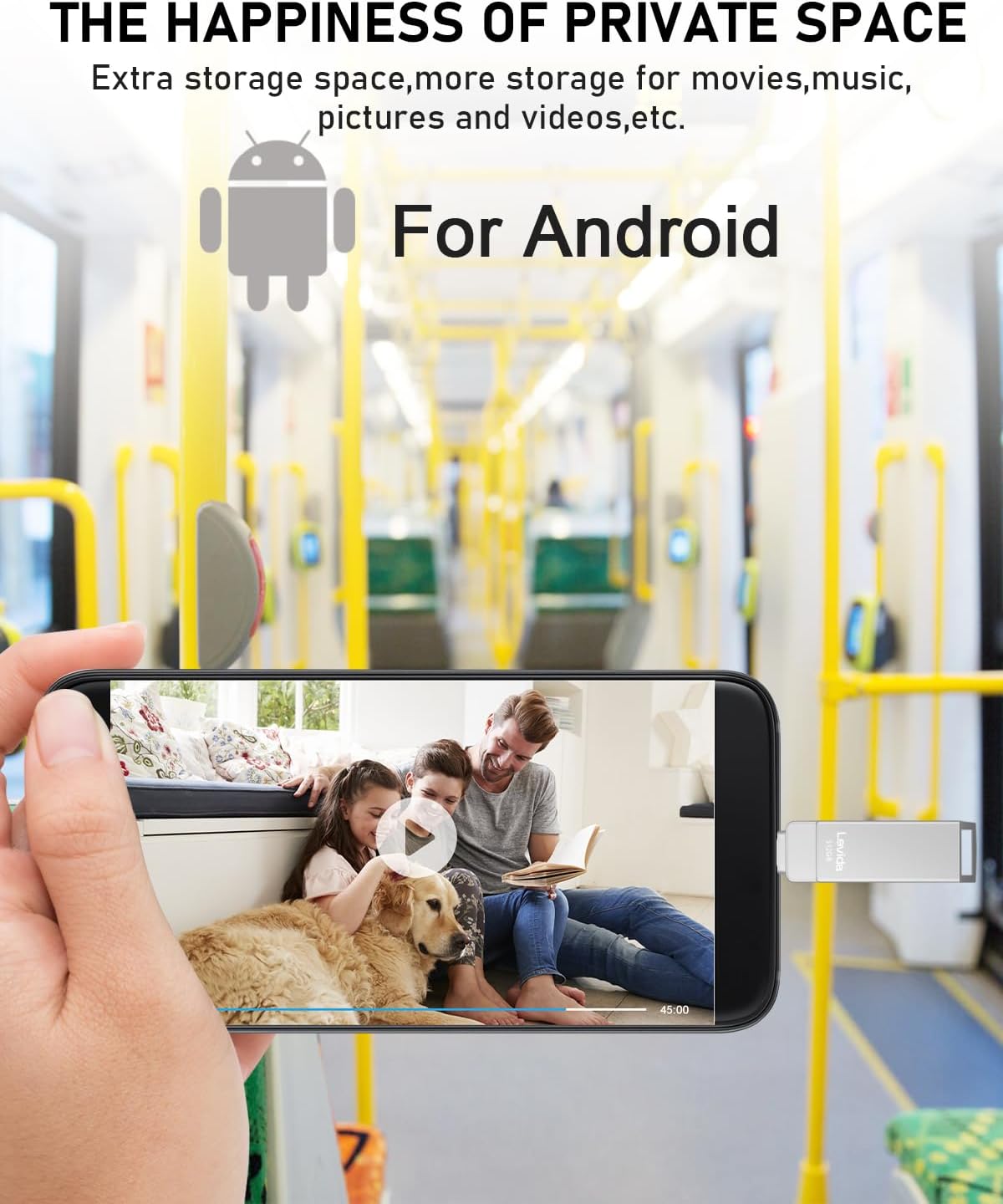 ✅【Grande capacità e trasferimento veloce】- La chiavetta USB Levida ha una capacità di archiviazione di 512 GB, con velocità di lettura fino a 80 MB/s e velocità di scrittura fino a 45 MB/s, che è il 300% più veloce rispetto alla USB 2.0. Facilita il trasferimento di file tra Android, Pad, Phone e computer, migliorando l’efficienza e risparmiando tempo. Una scelta eccellente per lo storage esterno del tuo smartphone!