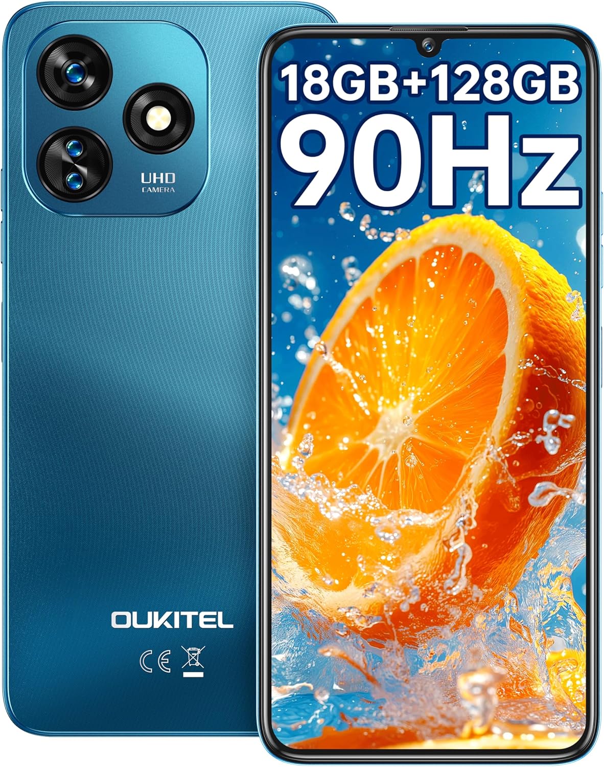 🧝🧝[Versione Aggiornata OUKITEL C51]:Lo smartphone OUKITEL C51 ha uno spessore di soli 9,4 mm e un peso di soli 205 g. Il design semplice ed elegante soddisfa i gusti estetici degli utenti di diverse età. Dispone inoltre di una batteria ad alta capacità da 5150mAh, supporta lo sblocco tramite impronta digitale e riconoscimento facciale. Con una frequenza di aggiornamento di 90Hz e l’ultimo sistema Android 13, è il regalo perfetto per te o per la tua famiglia!