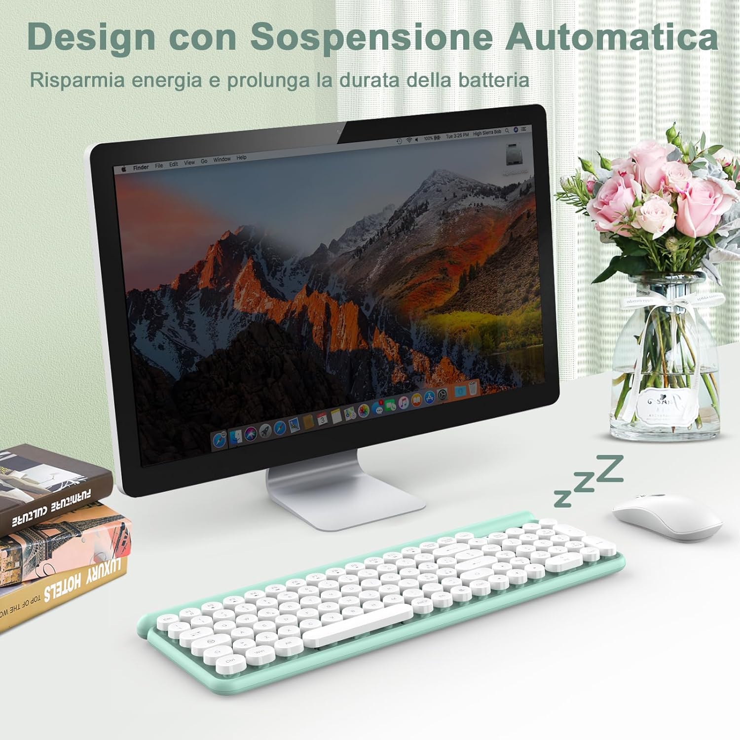 Sospensione automatica: Non è necessario sostituire frequentemente la batteria, la funzione di sospensione automatica assicura che la tastiera e il mouse risparmino energia quando non vengono utilizzati.