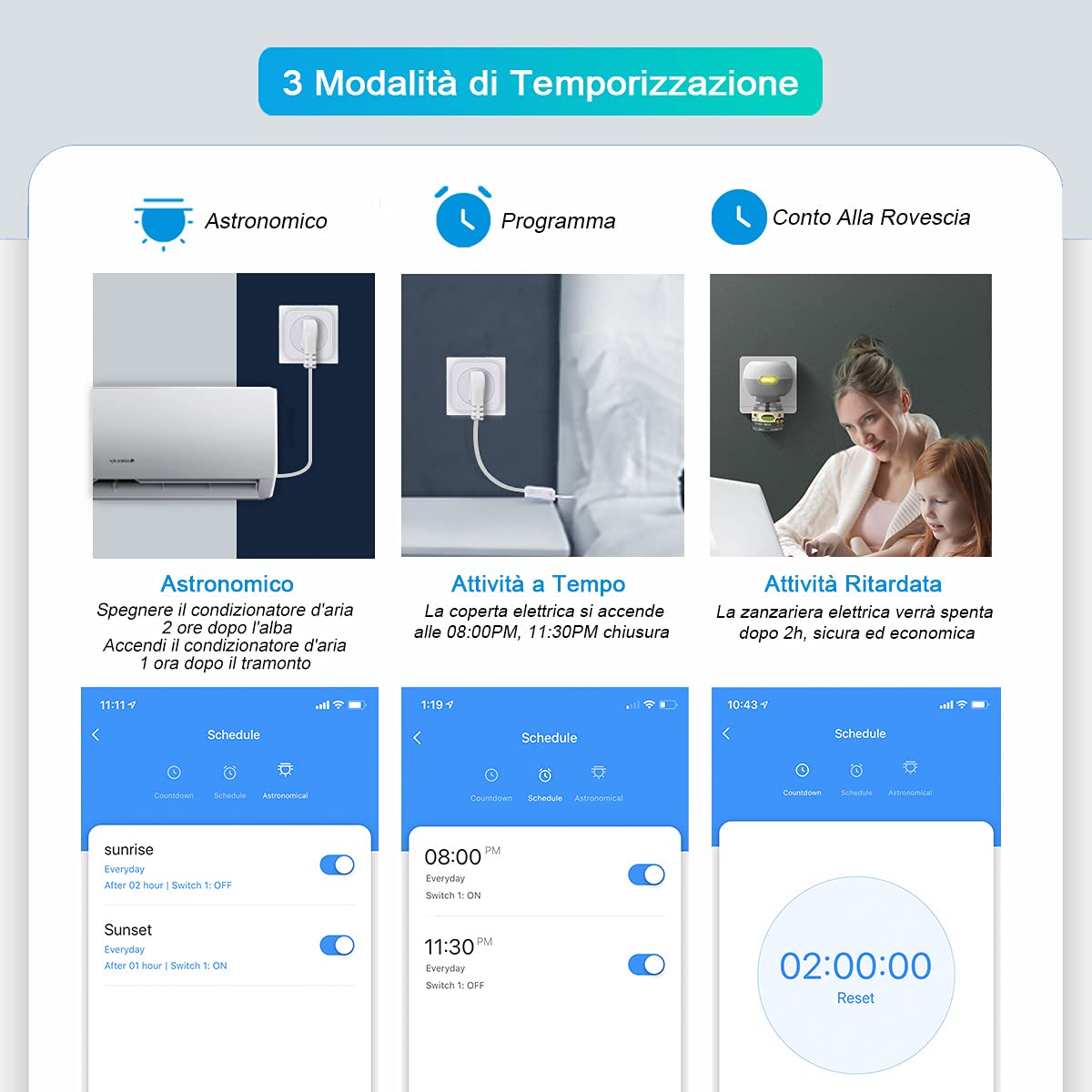 ITALIANA 16A:Presa Wifi Italiana 16A 3680W Monitor, Funzione Timer, APP Controllo Remoto, Compatibile con SmartThings, Amazon Alexa, Google Assistant