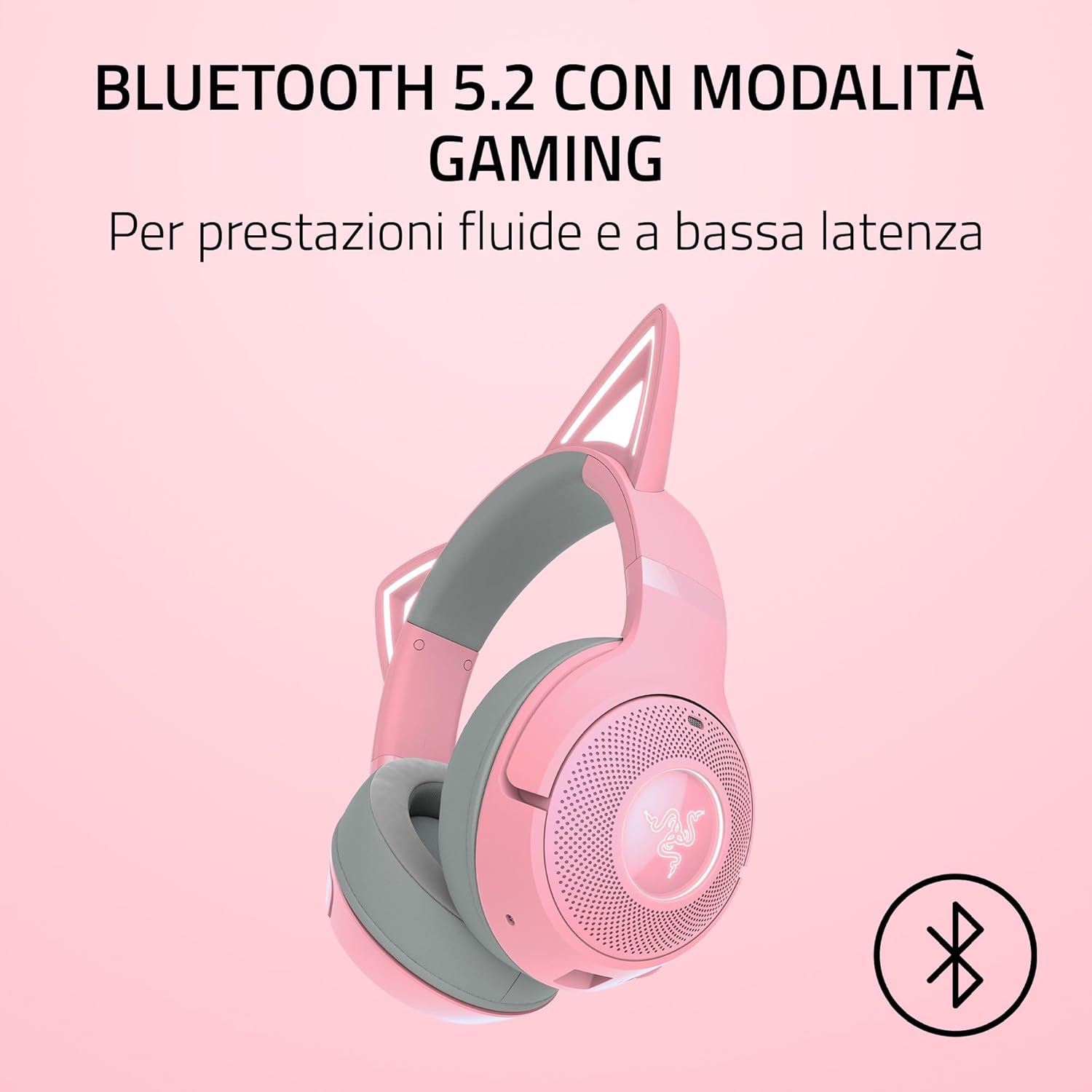 Scatena il tuo irresistibile stile felino con le Razer Kraken Kitty V2 BT: le cuffie wireless Bluetooth con Razer RGB per il gaming e lo streaming IRL. Dotate di Razer Chroma RGB, mostra a tutti la tua personalità e porta la tua passione a livelli mai visti.