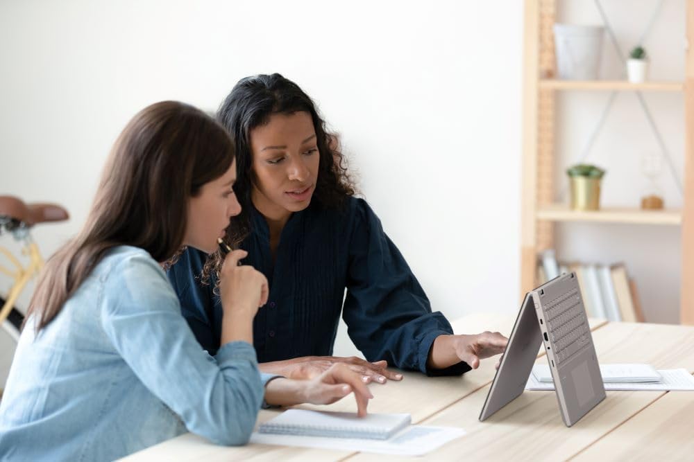 ASUS Chromebook Plus CX34 semplifica le discussioni di gruppo e la condivisione di immagini e idee, grazie al suo design elegante e leggero, abbinato a cerniere resistenti che consentono una posizione completamente piatta a 180 gradi.