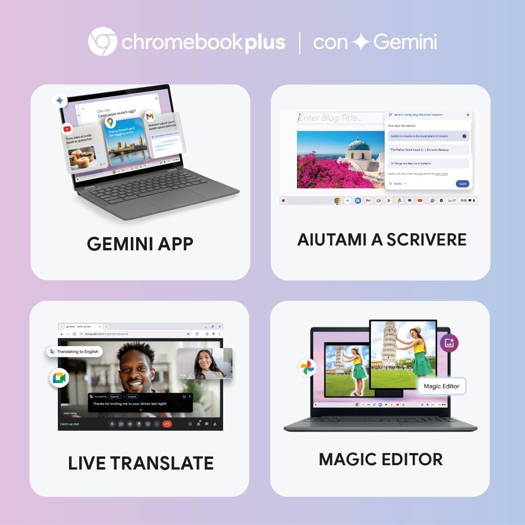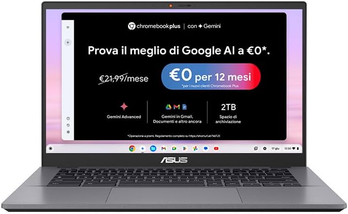 OTTIENI UN ANNO DI GOOGLE ONE: acquistando un nuovo Chromebook e registrandoti su Google One potrai ottenere 100 GB di spazio di archiviazione sul cloud per tutti i tuoi file e le tue foto, senza costi per un anno (si applicano termini)