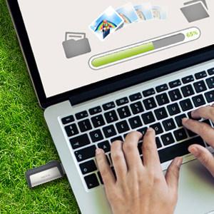 L’unità USB consente di espandere la memoria dello smartphone durante gli spostamenti. Foto e video vengono trasferiti sul tuo PC o smartphone fino a 150 MB/s