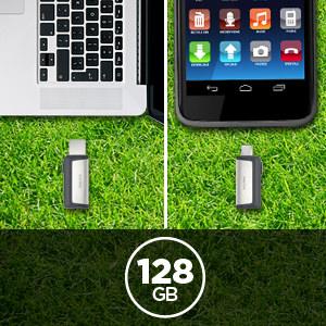 L’unità SanDisk Ultra Dual USB Tipo C offre fino a 128 GB [3] di archiviazione immediata, per fornirvi uno spazio di archiviazione sufficiente per le vostre ampie raccolte di brani musicali e foto.