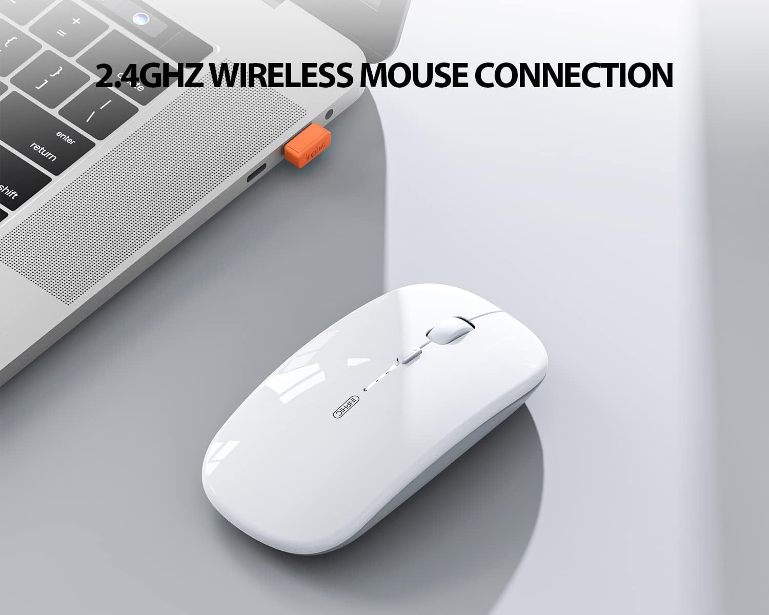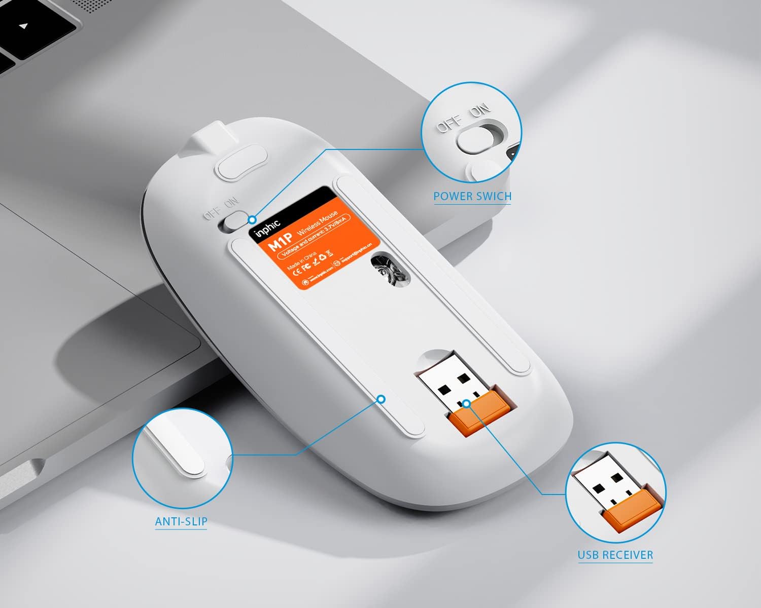 DESIGN ULTRA SOTTILE E CONFORTEVOLE – Rispetto a prodotti simili sul mercato, il nostro mouse wireless è molto più leggero e sottile. Può essere facilmente riposto nella borsa del laptop, perfetta per i viaggi. Nota: il ricevitore Nano è riposto nella parte posteriore del mouse.