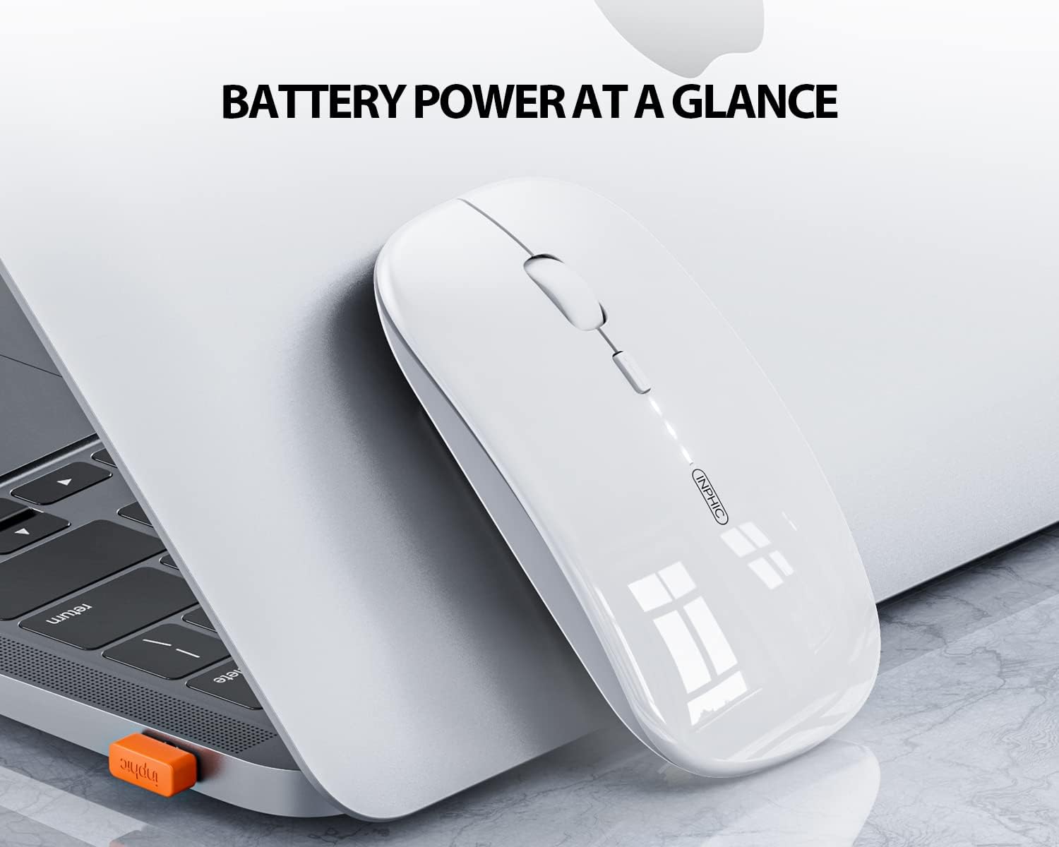 (FUNZIONE DI AGGIORNAMENTO) INDICATORE RICARICABILE E DI ALIMENTAZIONE – Batteria ricaricabile incorporata di grande capacità, che può essere utilizzata fino a un mese dopo una singola carica. Questo mouse wireless è dotato di tre indicatori luminosi di alimentazione e il design innovativo può visualizzare chiaramente la fonte di alimentazione, dicendo addio all’interruzione di corrente.