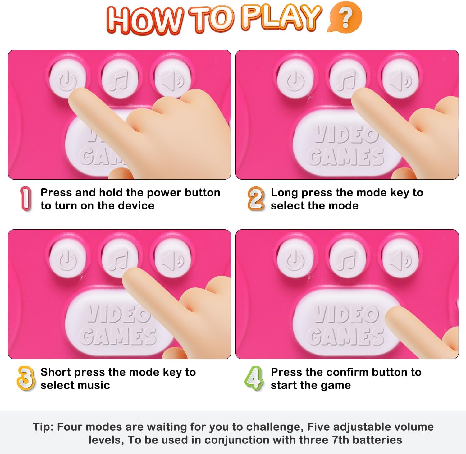 Come giocare: accendere il pulsante di accensione, fare clic sul pulsante del menu per selezionare la modalità di riproduzione (ci sono 4 modalità da facile a difficile), premere il pulsante con la stessa spia luminosa di direzione in base al ritmo e fare clic sul pulsante di conferma centrale per indicare il successo.