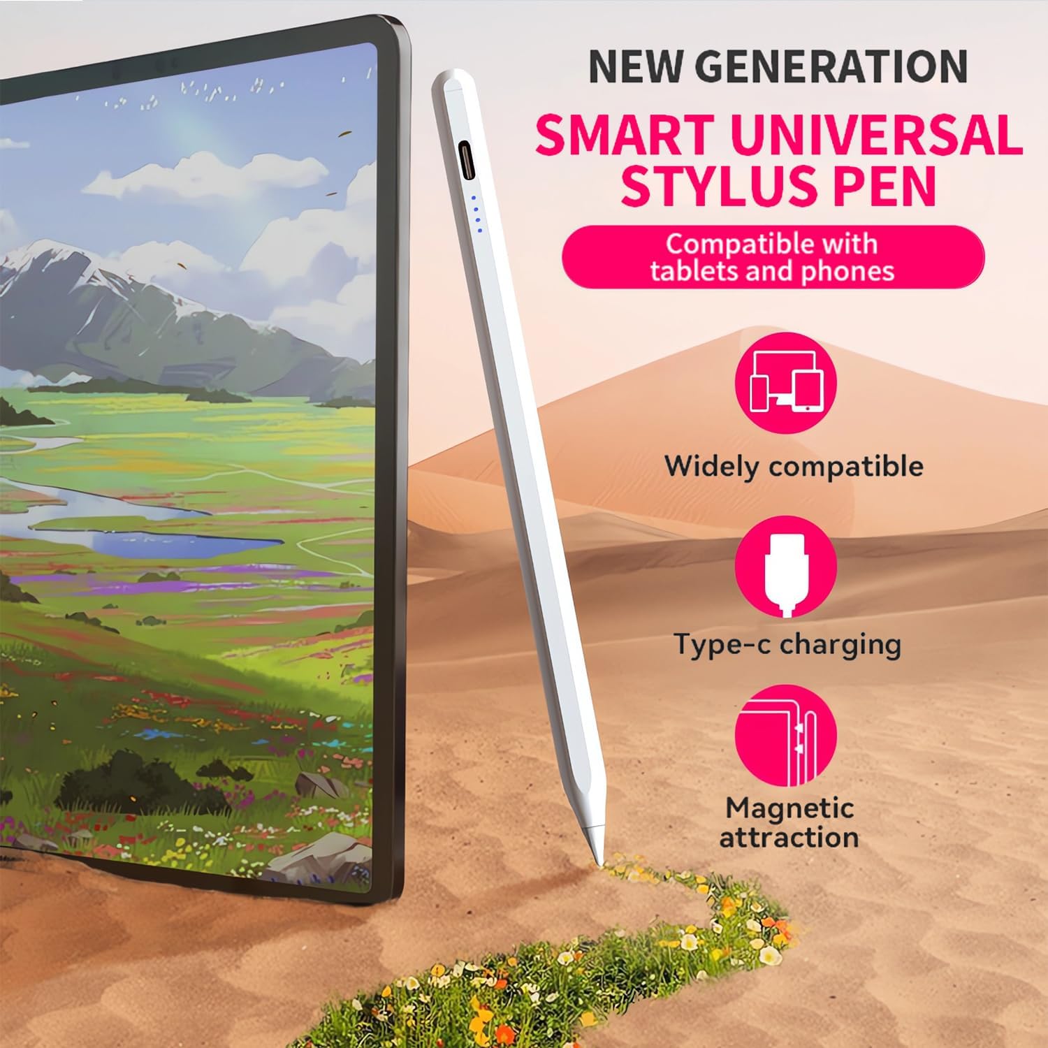 Penna digitale ricaricabile per tutti gli smartphone e i dispositivi a schermo condensatore, interruttore touch, display della batteria, 10 ore di standby esteso,Penna per Tablet,Stylus Pen Tablet Android,Compatibile Samsung/Vivo/Xiaomi/Huawei/Smartphone/Android/iOS, Penna Touch Tablette ad Alta Sensibilità e Precisione