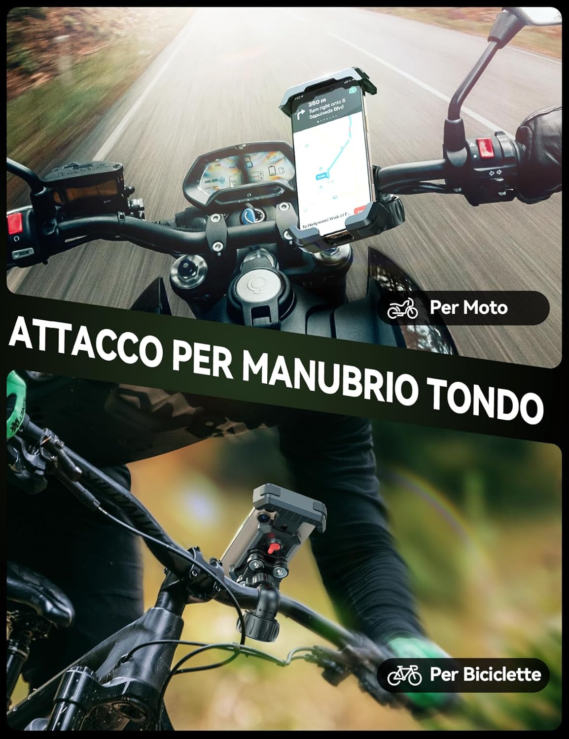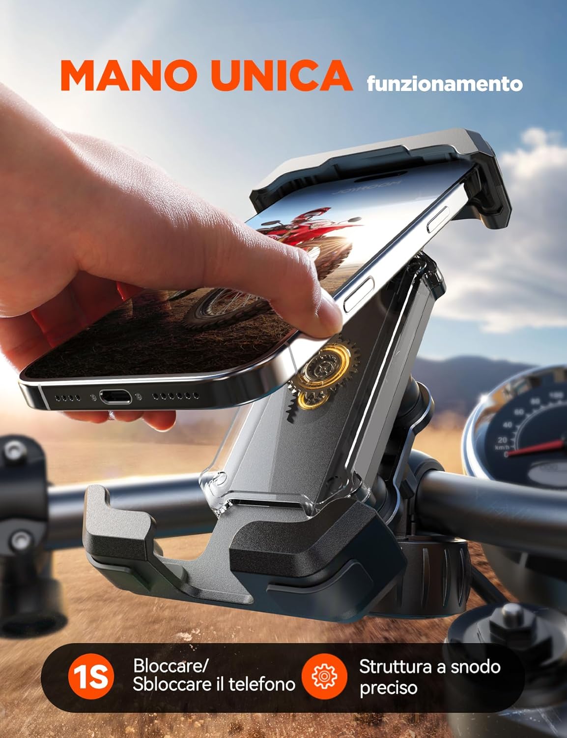 🚲【𝗠𝗼𝗻𝘁𝗮𝗴𝗴𝗶𝗼 𝗥𝗮𝗽𝗶𝗱𝗼, 𝗠𝗼𝗿𝘀𝗲𝘁𝘁𝗼 𝗔𝘃𝘃𝗼𝗹𝗴𝗲𝗻𝘁𝗲】Il sistema di montaggio avanzato di questo Supporto Telefono Moto si installa in 5 secondi senza attrezzi: posizionalo sul manubrio e gira per bloccare. La morsa a contatto completo previene scivolamenti anche sui percorsi più accidentati