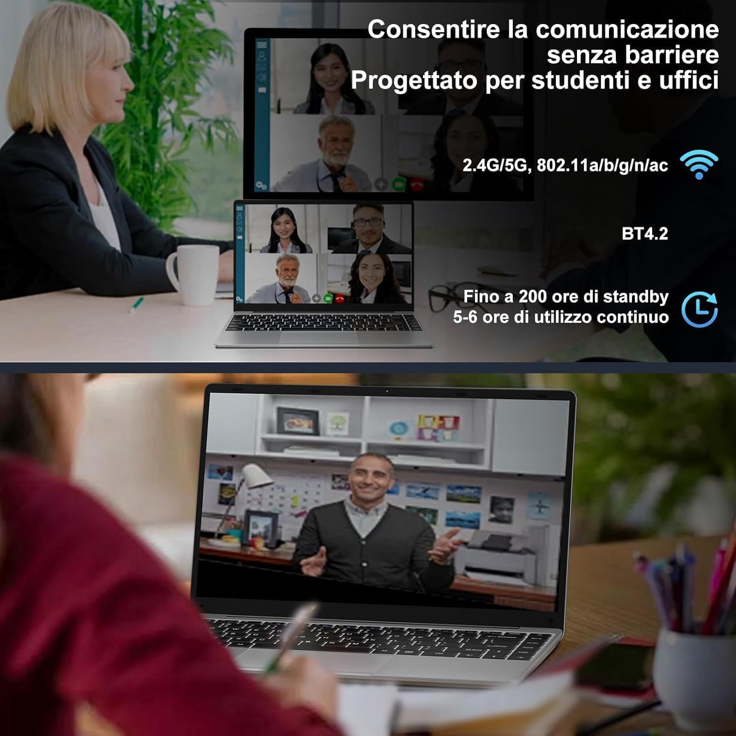 Display Luminoso: Il PC Portatile da 14,1 pollici è dotato di uno schermo ad alta risoluzione 1920*1080, display ad alta definizione IPS, bordo ultra-narw da 3 mm, colori ricchi, immagini delicate e dettagli chiari, permettendoti di godersi il colore vivido Visualizzazione ed espressione del colore naturale. Il PC Portatile è inoltre dotato di una fotocamera frontale da 2MP, che può essere utilizzata per l’insegnamento remoto e la conferenza remota, e può aiutarci a comunicare e interagire meglio con gli altri.