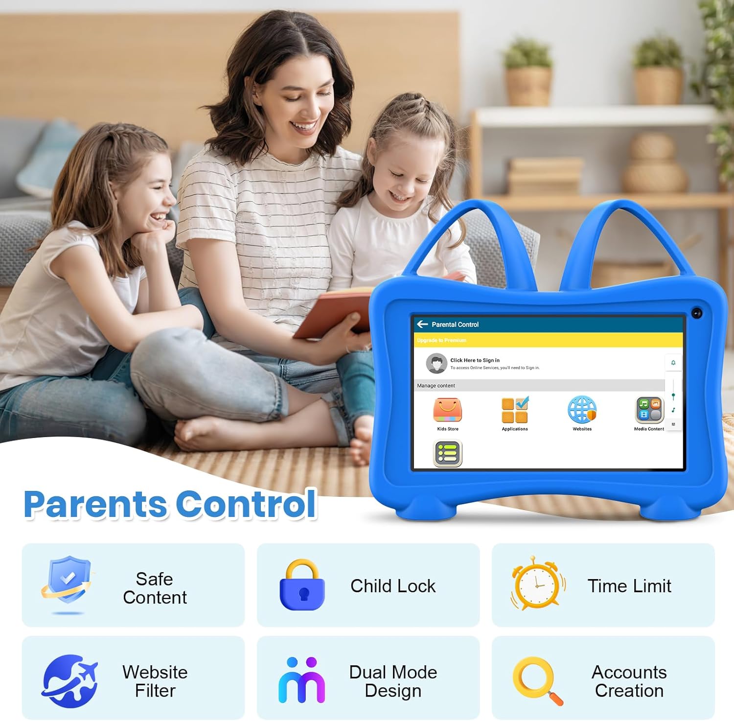 Controlli parentali: il tablet per bambini è facile da personalizzare per impostare il tempo di visione e gli obiettivi di apprendimento, filtrare i contenuti adatti all’età ed espandere la rete a misura di bambino man mano che i figli crescono. Quando si esce dalla modalità Kids, il tablet 7 pollici può essere utilizzato come un normale tablet bimbi. È quindi possibile scaricare altri software popolari, come YouTube, Netflix e altri programmi