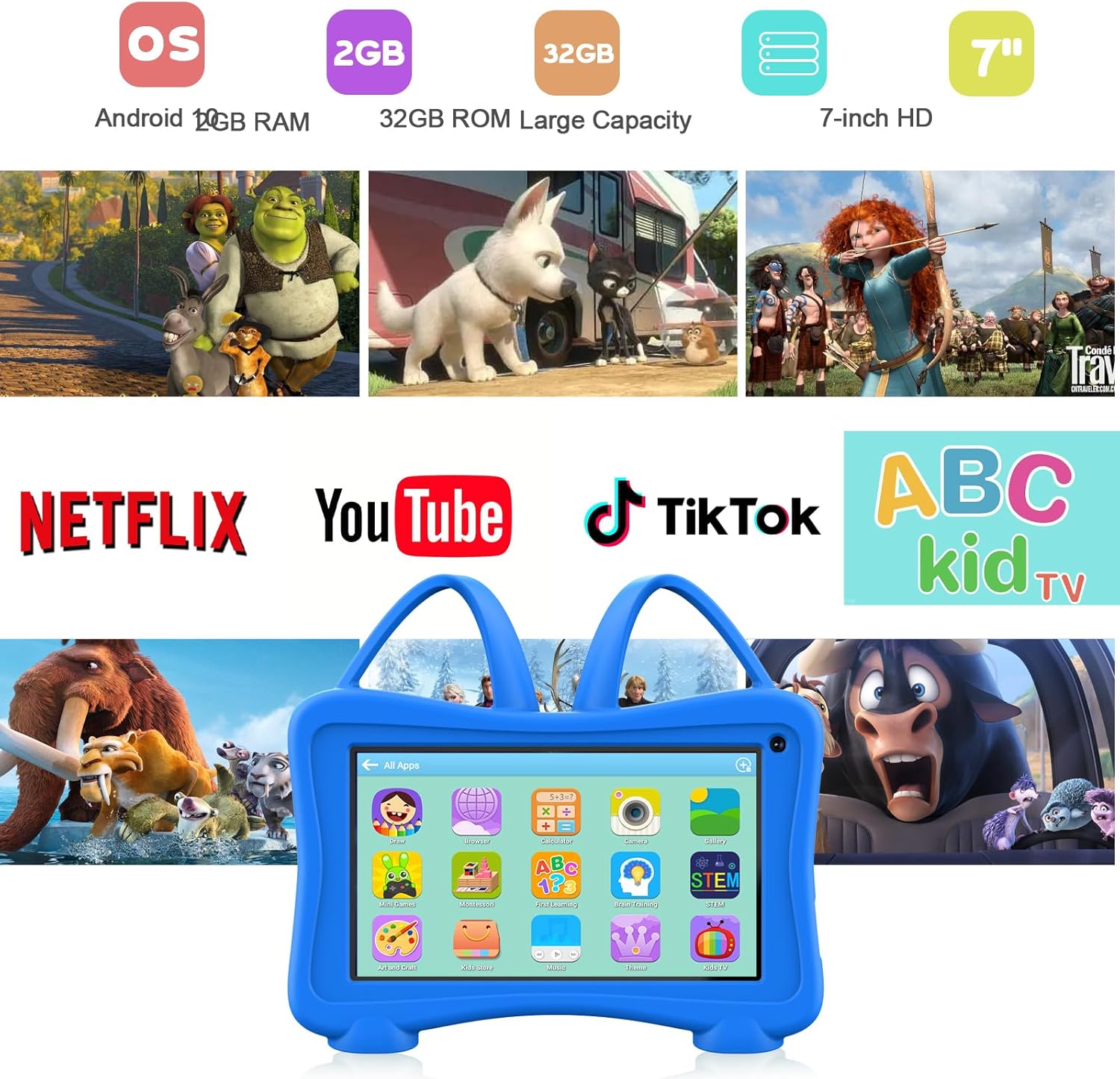 Potente tablet bambini: il tablet per bambini da 7 pollici funziona in modo più fluido rispetto agli altri modelli, è dotato di un potente processore quad-core e di Android 11, Wi-Fi, porta Type-C, doppia fotocamera, 2 GB di RAM, 32 GB di memoria ROM (espandibile fino a 64 GB) per memorizzare tutti i vostri preferiti. Il tablet per bambini 3 a 12 anni è certificato GMS, inoltre è possibile scaricare dal Play Store numerose app educative e di intrattenimento per bambini. Il tablet per bambini è un’ottima scelta per l’apprendimento e l’intrattenimento dei più piccoli