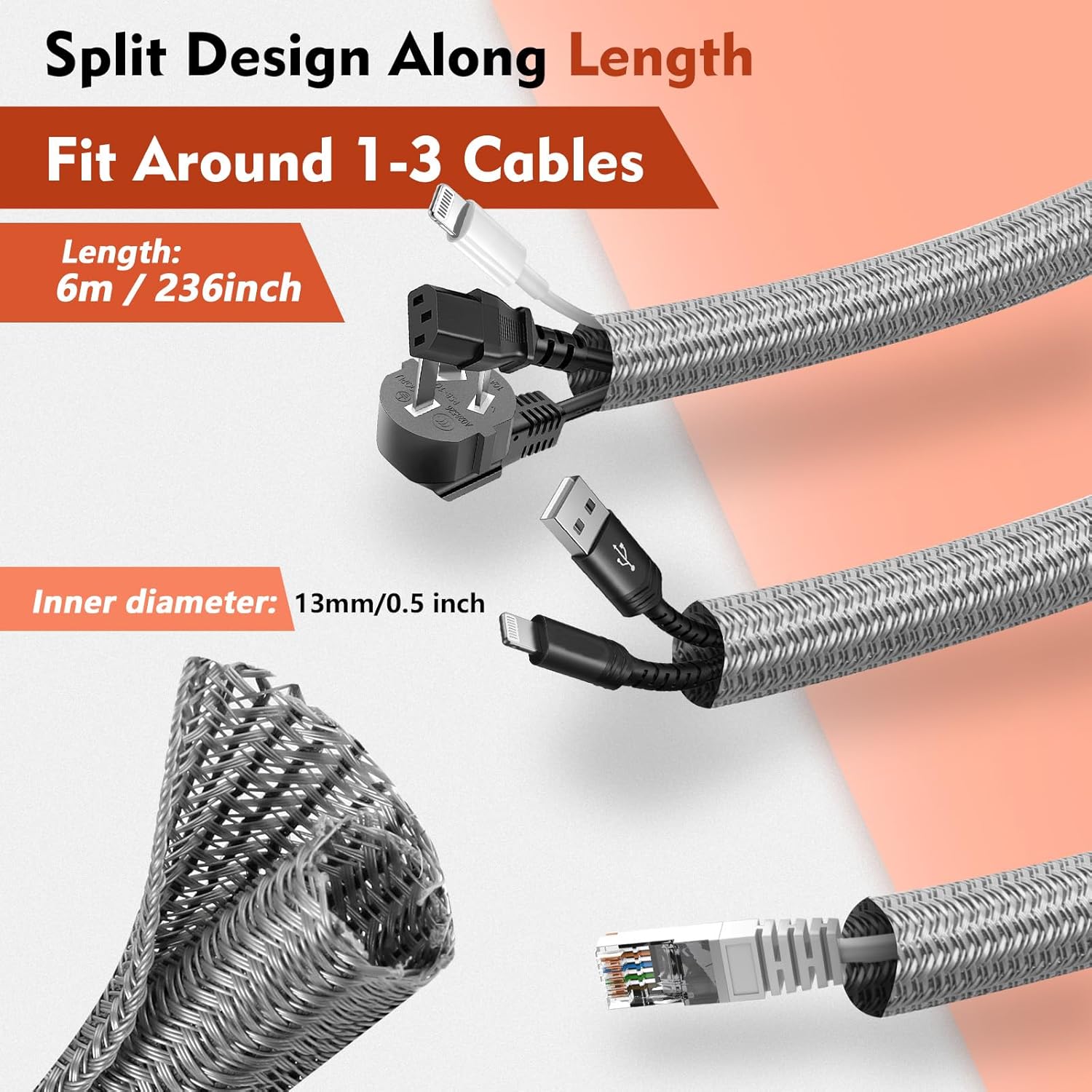đăLunghezza RegolabileăL’coprifili elettrici è lungo 6 metri, puoi usare le forbici per tagliare la lunghezza richiesta. Si consiglia di utilizzare un accendino per sciogliere l’estremitĂ dopo il taglio, altrimenti il ââtubo a rete si sfalderĂ facilmente.