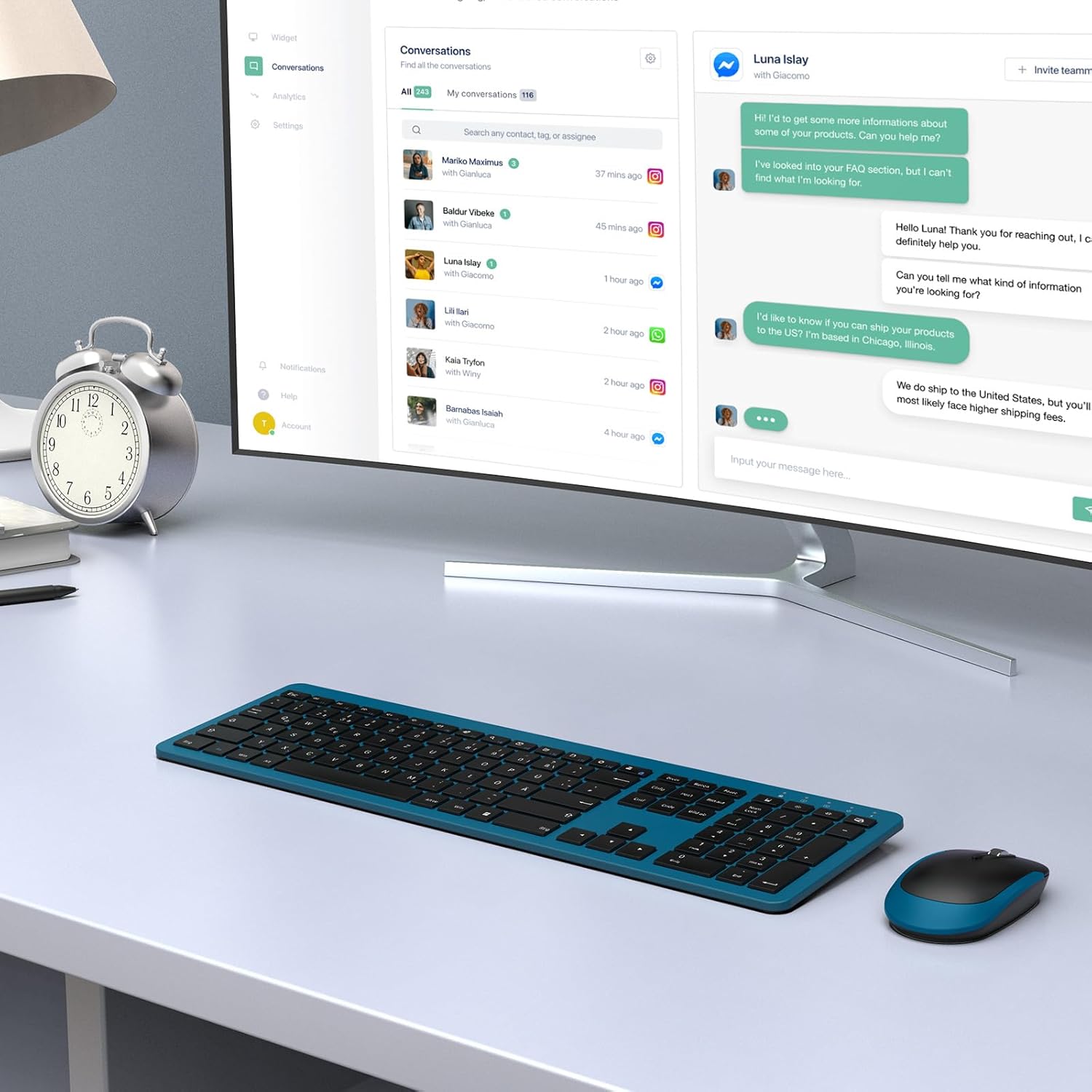 Design ultra sottile ed ergonomico: tastiera wireless ultra sottile, design ergonomico, clic silenzioso, adatta a tutti. La base a forbice dei tasti della tastiera rende la digitazione confortevole. L’angolo in aumento sostiene la mano per ore di lavoro confortevole.