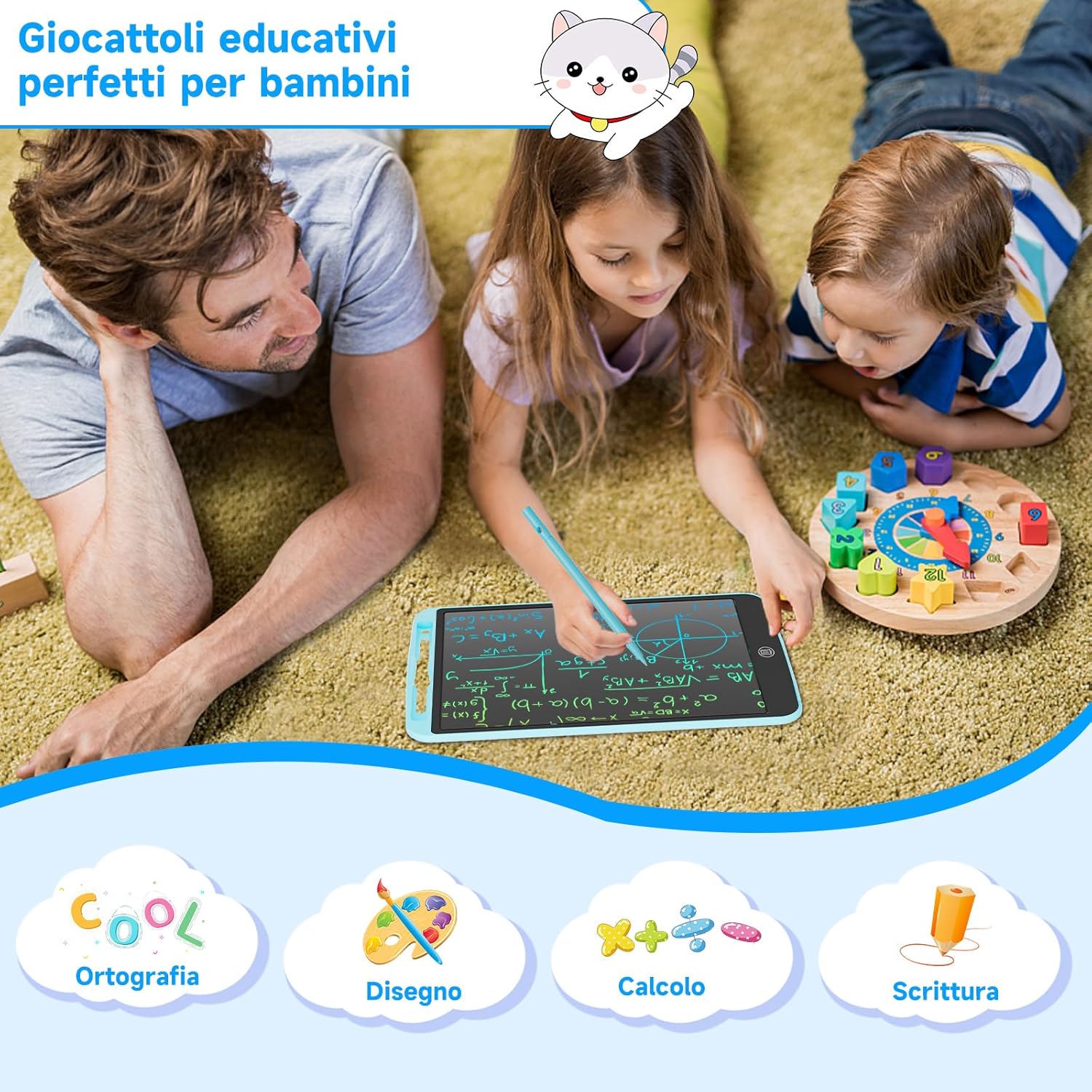 Tavoletta LCD economica e resistente per disegnare e scrivere senza carta. La penna o il dito scrivono sullo schermo, sviluppando abilità artistiche.