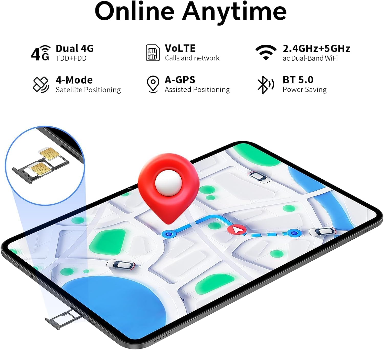 📞【Doppio 4G LTE +2.4/5GHz WiFi】Con doppio slot SIM e supporto per le reti 4G TD-LTE e FDD-LTE. Connessione dual WiFi e Bluetooth 5.0. Supporta le chiamate simultanee e la rete VoLTE. Tablet Android 16 supporta inoltre lo screencasting wireless per collegarsi facilmente a un televisore a grande schermo.