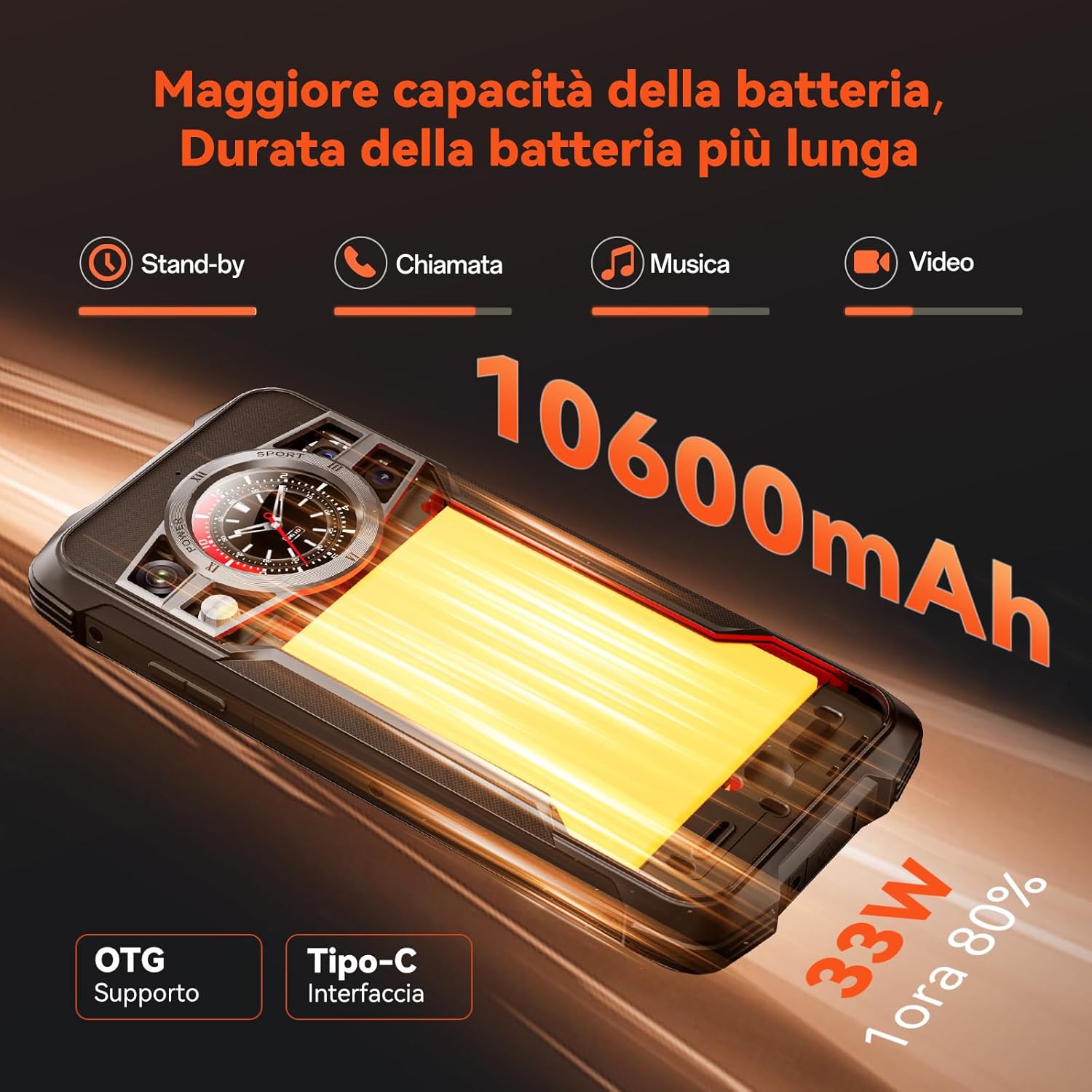 🔋【BATTERIA 10600MAH + NFC + RICARICA INVERSA OTG】Lo smartphone rugged CUBOT kingkong 9 è dotato di una grande batteria da 10600mAh. Il telefoni indistruttibili raggiunge una maggiore durata della batteria nei giochi, nella navigazione Web e in standby e supporta la ricarica rapida da 33W. Il telefono cellulare può essere utilizzato come alimentatore mobile per fornire alimentazione ad altri dispositivi tramite il cavo dati OTG. Inoltre, ha la funzione NFC e supporta Google Pay.