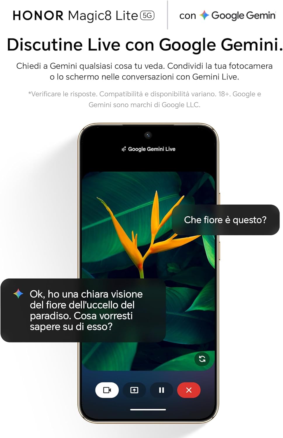 10. I dati provengono dal Laboratorio HONOR, che simula l’utilizzo dello schermo da parte degli utenti per 5 ore al giorno. 1.000 cicli completi possono garantire 6 anni di vita utile della batteria. L’esperienza effettiva può variare a causa dei diversi metodi e abitudini di utilizzo personali.11. La potenza massima di ricarica con cavo supportata è di 66 W, e per raggiungere questo risultato è necessario utilizzare il caricatore e il cavo di ricarica originali. La potenza di ricarica effettiva varierà in base allo scenario di utilizzo.12. I dati provengono dai laboratori HONOR. A una temperatura ambiente compresa tra -30°C e 55°C, il telefono funziona normalmente in modalità standby e supporta chiamate, contatti e messaggi. L’esperienza effettiva può variare a seconda di fattori quali l’età del dispositivo, l’ambiente di rete, le abitudini dell’utente e le variazioni di temperatura individuali. Si prega di fare riferimento all’esperienza effettiva.